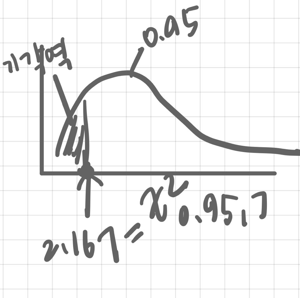 예를 들어, 16개의 표본으로 σ²의 95% 신뢰구간을 구해보자.