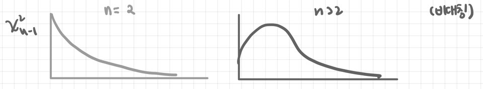 • 중심축량 = (n - 1) S² / σ² ~ χ²(n-1)       // 유도는 '수리통계학'에서