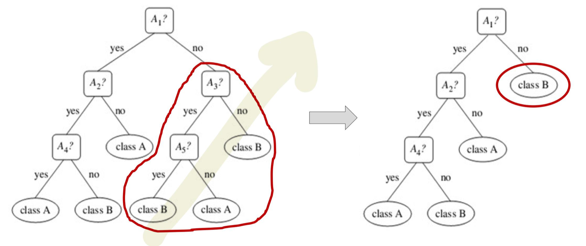 - node와 branch들을 잘라내고, 그자리를 leaf node로 바꾸는 방법이다.