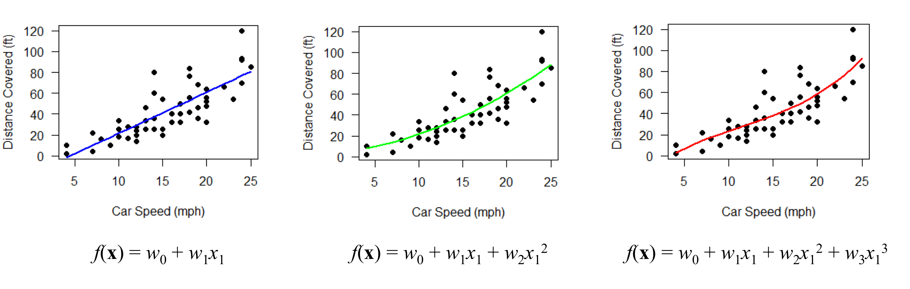 - 즉, 변수나 항을 늘릴수록 훈련 데이터셋에서의 정확도는 증가한다.