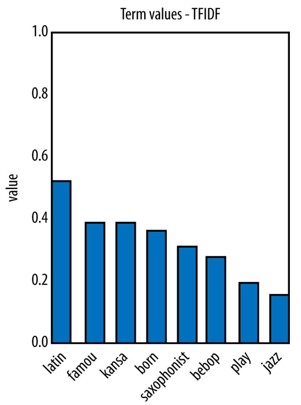 - TFIDF가 클수록 (latin) 희귀한 단어이고, 작을수록 (jazz) 많이 나오는 단어이다.