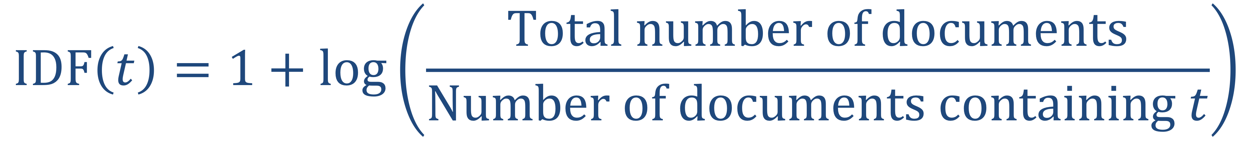 - 이러한 단어 t의 희소성은 IDF에 의해 측정된다.