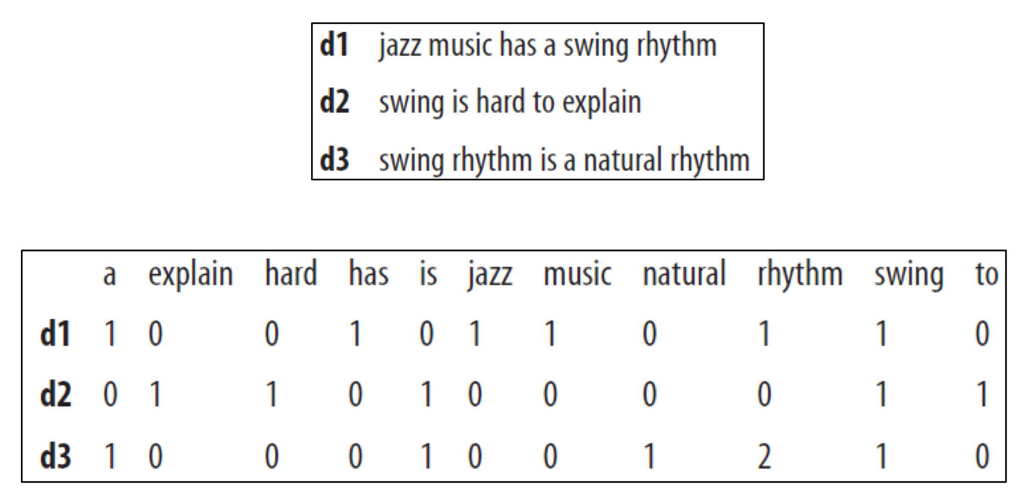 - 이는 샘플 문서에 대한 feature vector이다.