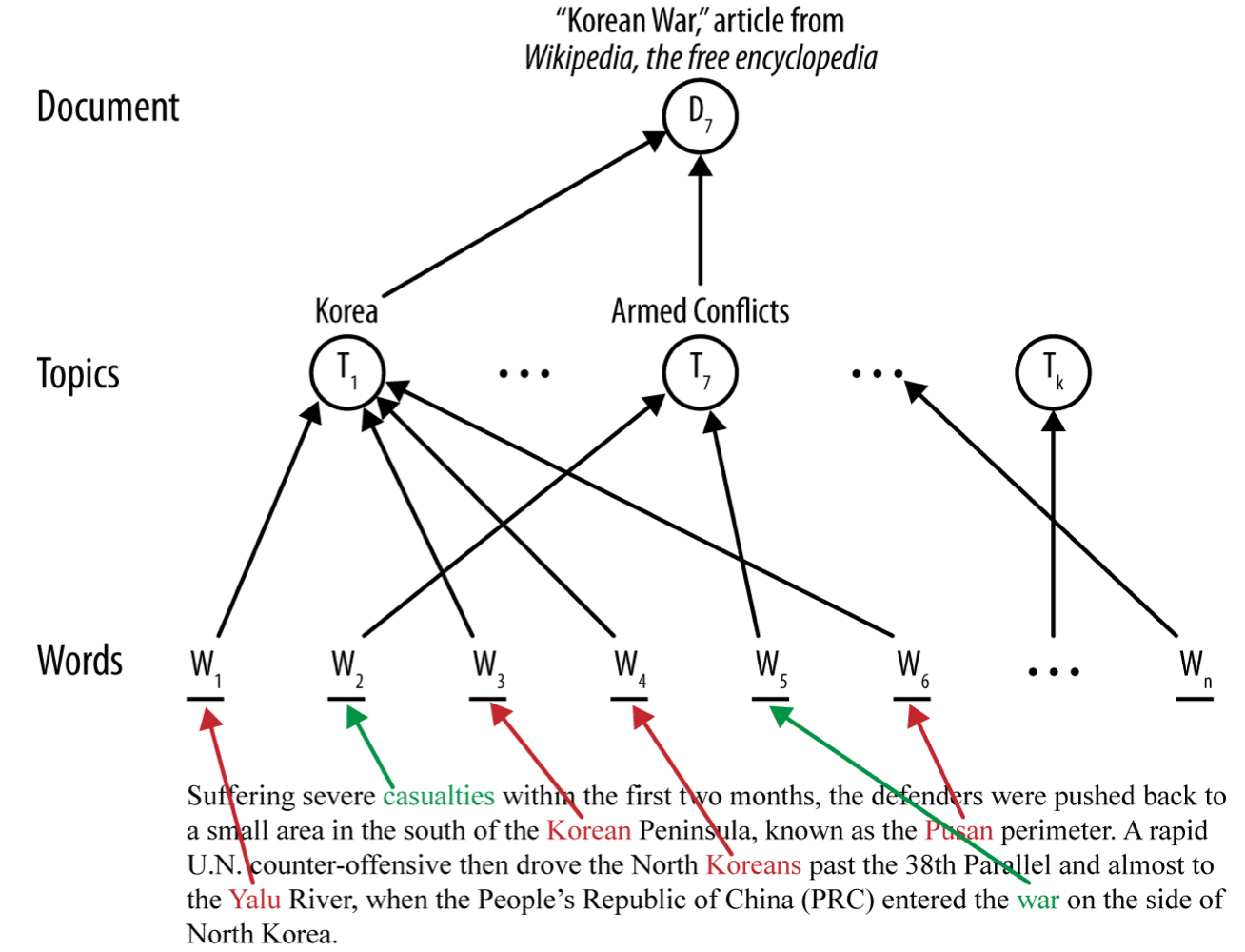 - topic layer는 문서의 단어들의 클러스터들이라고 볼 수 있다.