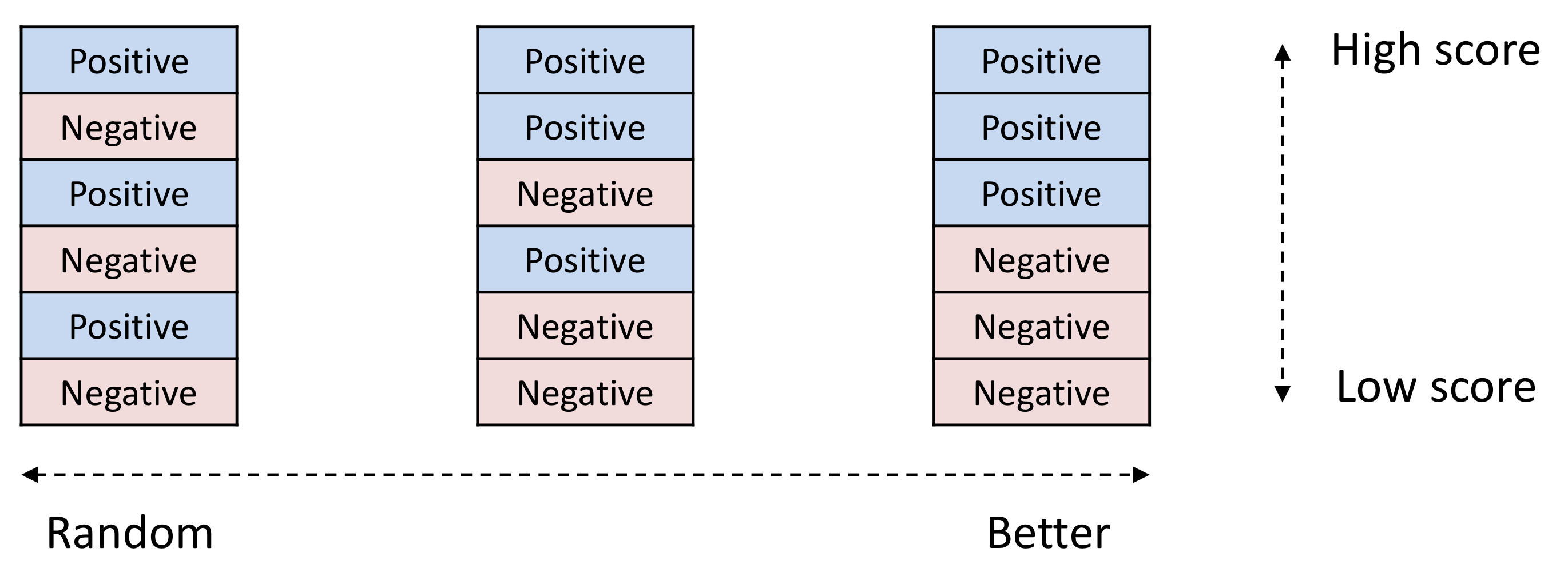 - 즉, 리스트에서 positive instance를 negative instace 위로 올리는 정도를 의미한다.