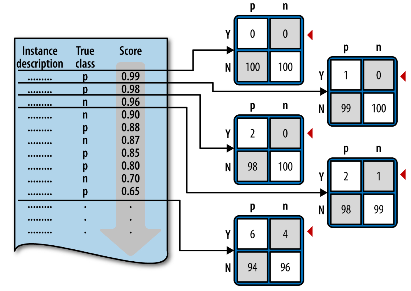 - 개체에 점수를 매기는 classifier가 있다고 하자. 이때 점수는 확률값 (or distance)이다.