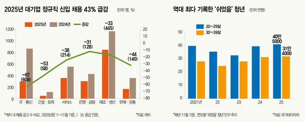 - 수시 채용 및 경력직 선호: 신입 사원이 직무 경험을 쌓을 기회 자체가 구조적으로 차단됨