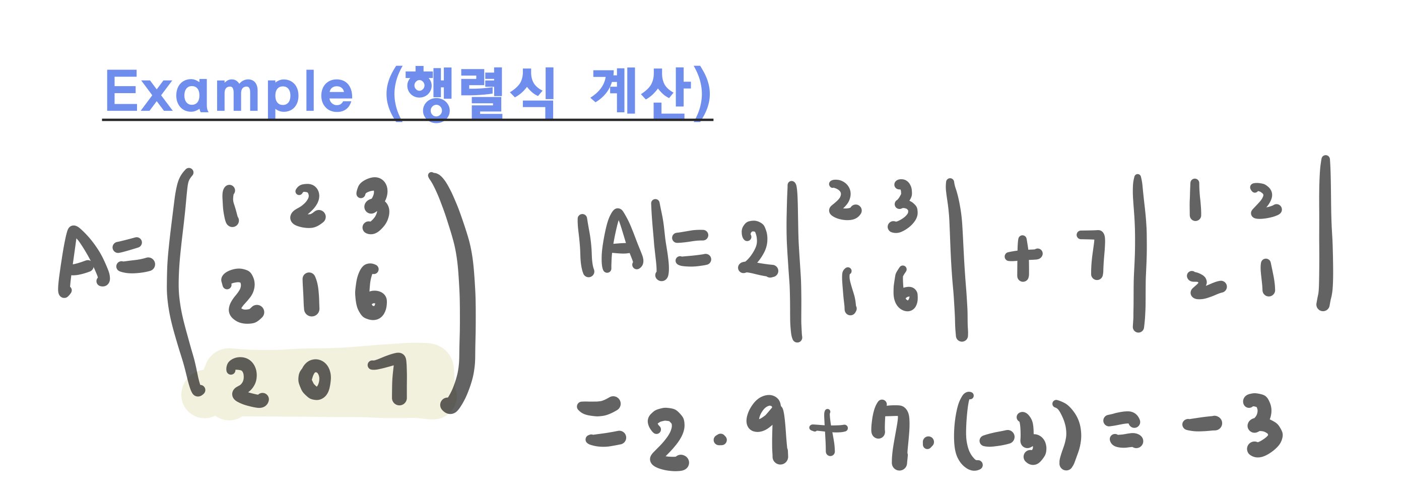 행렬 A (n x n) = (a𝑖𝑗)의 행렬식은 다음과 같이 계산될 수 있다.