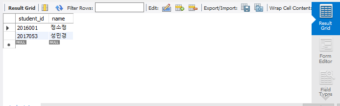 NULL, NOT NULL은 NULL값이 될 수 있냐 없냐를 정해주는 것이다. 예제의 경우 학번과 이름은 NULL값이 될 수 없도록 했다.