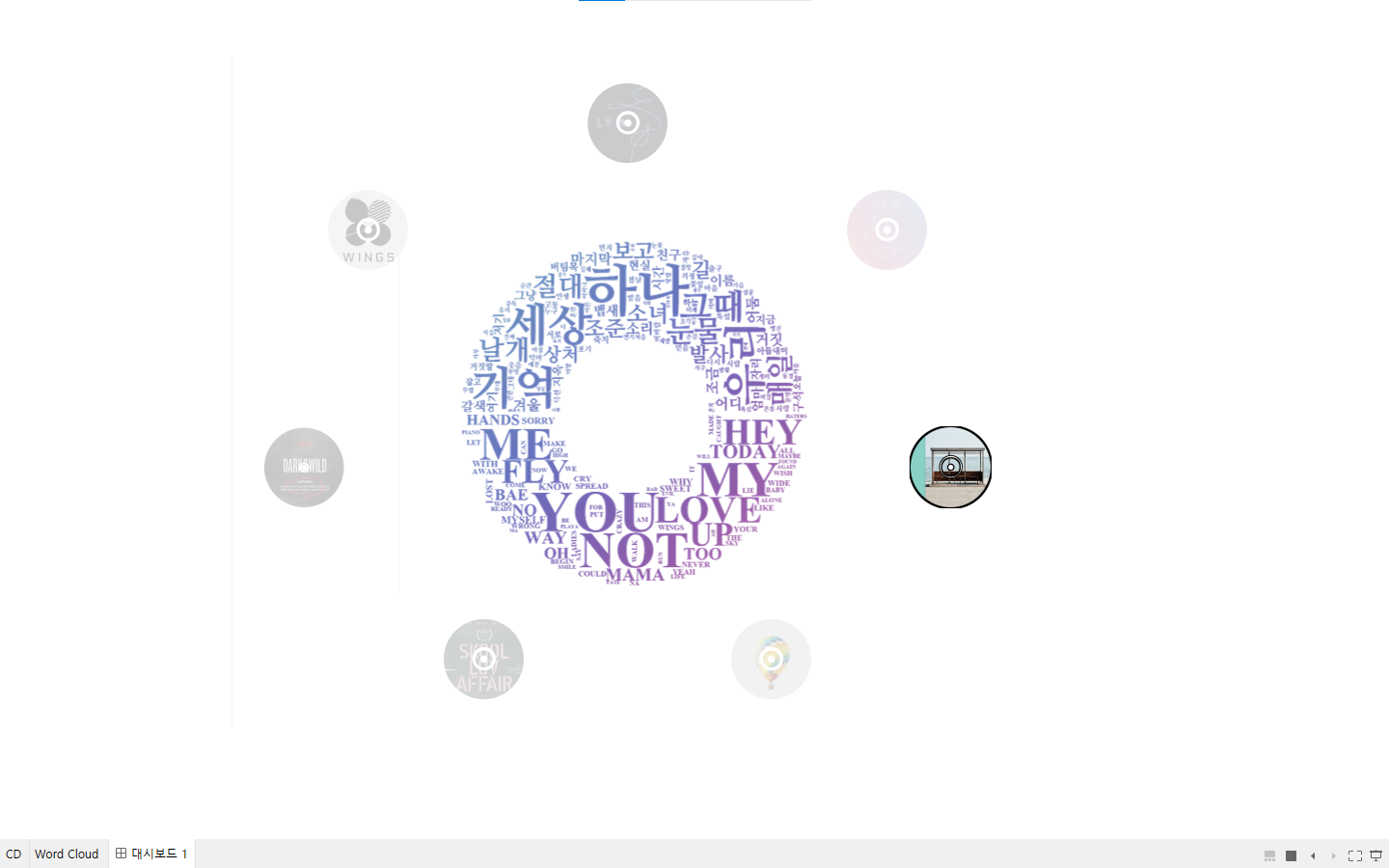 앨범을 선택하면 그에 따른 워드 클라우드 사진을 보여준다.